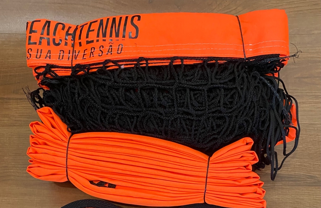 A rede de beach tennis Ideal para ser utilizada a qualquer momento por se tratar de uma rede leve, de fácil montagem e de transporte. Rede cor preta, com tratamento UV que evita a degradação dos polimeros ocasionada por intémperies, matéria prima virgem de alta densidade, a rede foi feita em laboratório para aumentar ainda mais o seu tempo de uso. Tratamento ultravioleta (evita a degradação dos polímeros ocasionada por intempéries. Estilo: Beach tennis. Material: 100% polietileno. Faixas: 4 Faixas Nylon 6cm. Malha: 4 x 4 Seda. Fio: 2.5 mm. Dimensões (L x C): 1 m x 8,2 m).